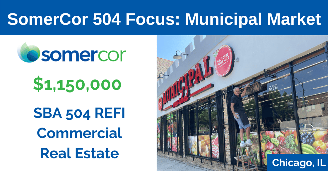 SomerCor partnered up with Municipal Market on an SBA 504 refinance of the property. The original loan used to finance the market had a a five year term and was set to balloon at the end of 2023. By using the 504 refi, their debt was restructured and the SBA portion is now under a 25 year term. Plus, the lower interest decreased monthly mortgage payments on the property by 25%.