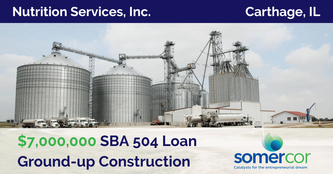 SomerCor has partnered with Matt and Andrea Dearwester on three SBA 504 loans. The most recent project was the construction of a new feed processing mill for Nutrition Services, Inc. The location includes a 20-acre parcel of land with a 12,600 square foot industrial building. The SBA 504 loan can be a great fit for agricultural businesses to purchase, expand, and refinance commercial real estate and heavy equipment.